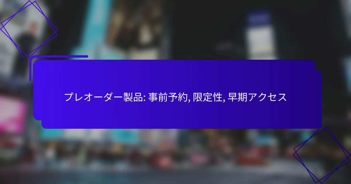 プレオーダー製品は、正式な発売前に顧客が事前に予約できる商品であり、限定商品を早期に手に入れるチャンスを提供します。このプロセスを通じて、消費者は新製品を確保し、特別感を味わうことができます。 プレオーダー製品とは何ですか? プレオーダー製品は、正式な発売前に顧客が事前に予約できる商品です。これにより、消費者は限定商品を早期に手に入れることができます。 プレオーダー製品の定義と特徴 プレオーダー製品は、通常の販売開始前に予約を受け付ける商品です。これらの商品は、特定の数量が限られていることが多く、予約をすることで確実に入手できるメリットがあります。 特徴としては、発売日が設定されていること、予約者には特別な特典が用意されることがある点が挙げられます。例えば、限定版のパッケージや特典アイテムが付属することがあります。 プレオーダー製品の一般的な用途 プレオーダー製品は、特にゲーム、電子機器、ファッションアイテムなどで一般的に利用されます。新作ゲームや人気のスマートフォンが発売される際には、プレオーダーが多く行われます。 また、特定のブランドやデザイナーが手掛ける限定商品も、プレオーダーの対象となることが多いです。これにより、ファンやコレクターは早期に商品を手に入れることができます。 プレオーダー製品の利点と欠点 プレオーダー製品の利点には、確実に商品を手に入れられることや、特典を受けられることがあります。また、人気商品がすぐに売り切れるリスクを避けることができます。 一方で、欠点としては、商品が期待通りでない場合や、発売が遅れる可能性があることが挙げられます。事前に支払いを済ませるため、キャンセルや返金が難しい場合もあります。 プレオーダー製品の市場動向 近年、プレオーダー製品の市場は拡大しています。特に、オンライン販売の普及により、消費者は簡単にプレオーダーを行えるようになりました。 また、企業はプレオーダーを通じて需要を把握し、生産計画を立てることができるため、効率的な在庫管理が可能になります。これにより、消費者と企業の双方にとってメリットが生まれています。 プレオーダー製品の事前予約はどのように行いますか? プレオーダー製品の事前予約は、特定の製品を正式に購入する前に予約を行うプロセスです。これにより、限定商品や新製品を早期に確保することができます。 予約プロセスのステップ プレオーダーの予約プロセスは通常、いくつかの簡単なステップで構成されています。まず、希望する製品を選択し、販売サイトにアクセスします。次に、予約ボタンをクリックして、必要な情報を入力します。 最後に、予約内容を確認し、支払い方法を選択して確定します。予約が完了すると、確認メールが届くことが一般的です。 必要な情報と書類 プレオーダーを行う際には、いくつかの基本的な情報が必要です。通常、氏名、住所、連絡先電話番号、メールアドレスが求められます。 また、支払い情報も必要です。クレジットカード情報や、場合によっては本人確認書類の提出が求められることもありますので、事前に準備しておくとスムーズです。 予約の確認方法 予約が完了した後は、確認方法がいくつかあります。最も一般的なのは、登録したメールアドレスに送信される確認メールです。このメールには、予約内容や支払い情報が含まれています。 また、販売サイトのアカウントにログインすることで、予約状況を確認することも可能です。特に大規模な販売イベントでは、予約状況の確認が重要です。 プレオーダー製品の限定性とは何ですか? プレオーダー製品の限定性は、特定の製品が限られた数量で提供されることを指します。この限定性は、消費者に早期アクセスを提供し、特別感を生み出す要因となります。 限定性の種類とその影響 プレオーダー製品の限定性には、数量限定、期間限定、特典付きの限定性があります。数量限定は、特定の数だけ製造されるため、早めの購入が求められます。 期間限定は、特定の期間内にのみ購入可能で、消費者の購入決定を促進します。特典付きの限定性は、特別なアイテムやサービスが付属することで、より魅力的に映ります。 限定性が購入意欲に与える影響 限定性は、消費者の購入意欲を高める重要な要素です。希少性があると感じることで、消費者は早期に購入を決断する傾向があります。 また、限定性は「逃すことへの恐れ」を生み出し、購入を急がせる効果があります。特に、特典や割引がある場合、購入意欲はさらに高まります。 プレオーダー製品の早期アクセスのメリットは何ですか? … プレオーダー製品: 事前予約, 限定性, 早期アクセスRead more